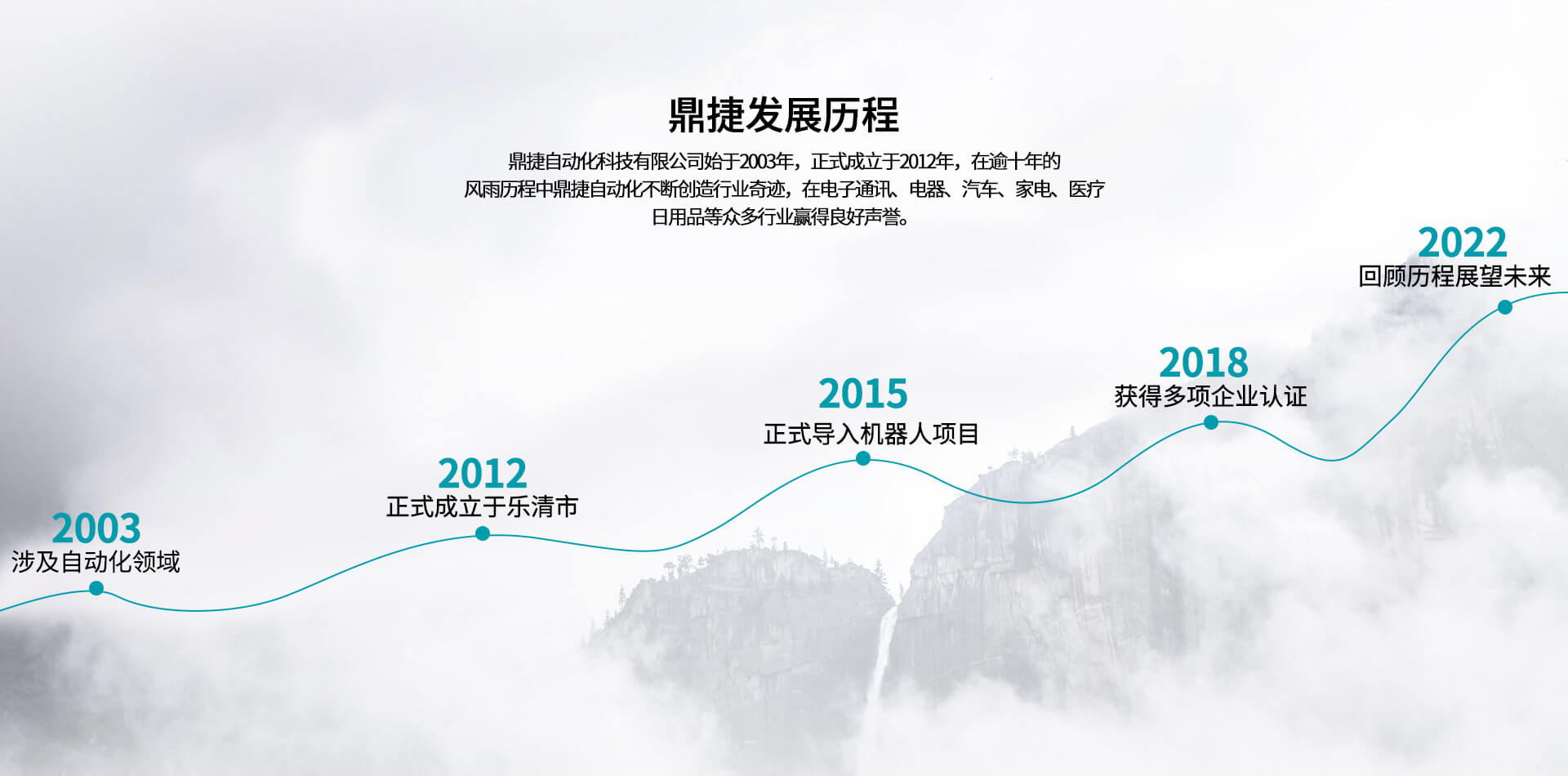 鼎捷自動化專業從事連接器、開關及相關電子電器、五金、塑膠等產品的組裝自動化定制;2012年,鼎捷自動化正式導入機器人應用項目,目前擁有多支專業的技術團隊和行業領先的制造工廠,可為電子、電器、汽車、五金、塑膠等各類客戶提供自主設計、制造的集成自動化智能組裝系統。